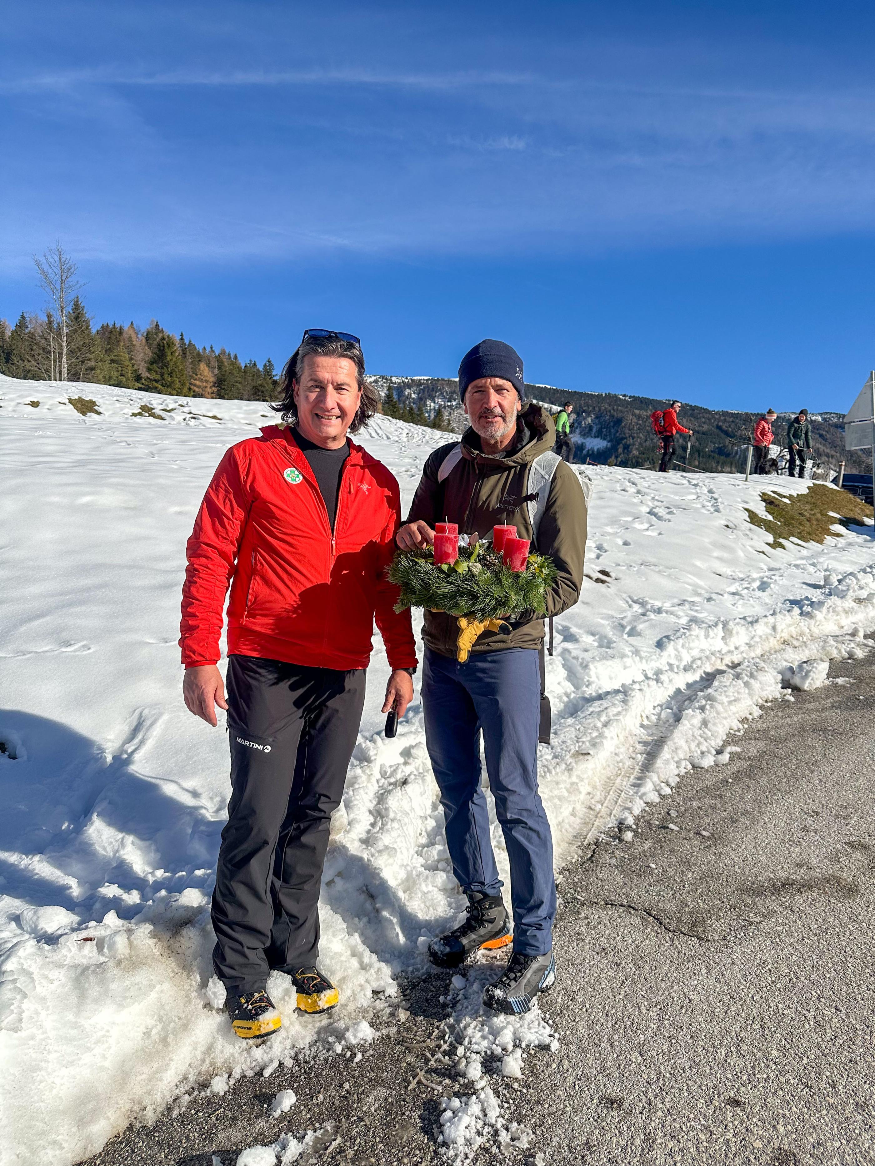 Auch der Landesleiter der Bergrettung Kärnten, Hannes Gütler und der Ehrenpräsident des Österreichischen Bergrettungsdienstes Reinhold Dörflinger, nahmen neben zahlreichen Teilnehmern an der schlichten Feier, zelebriert von Mag. Roland Stadler, Bergwanderführer und Bergseelsorger, teil.