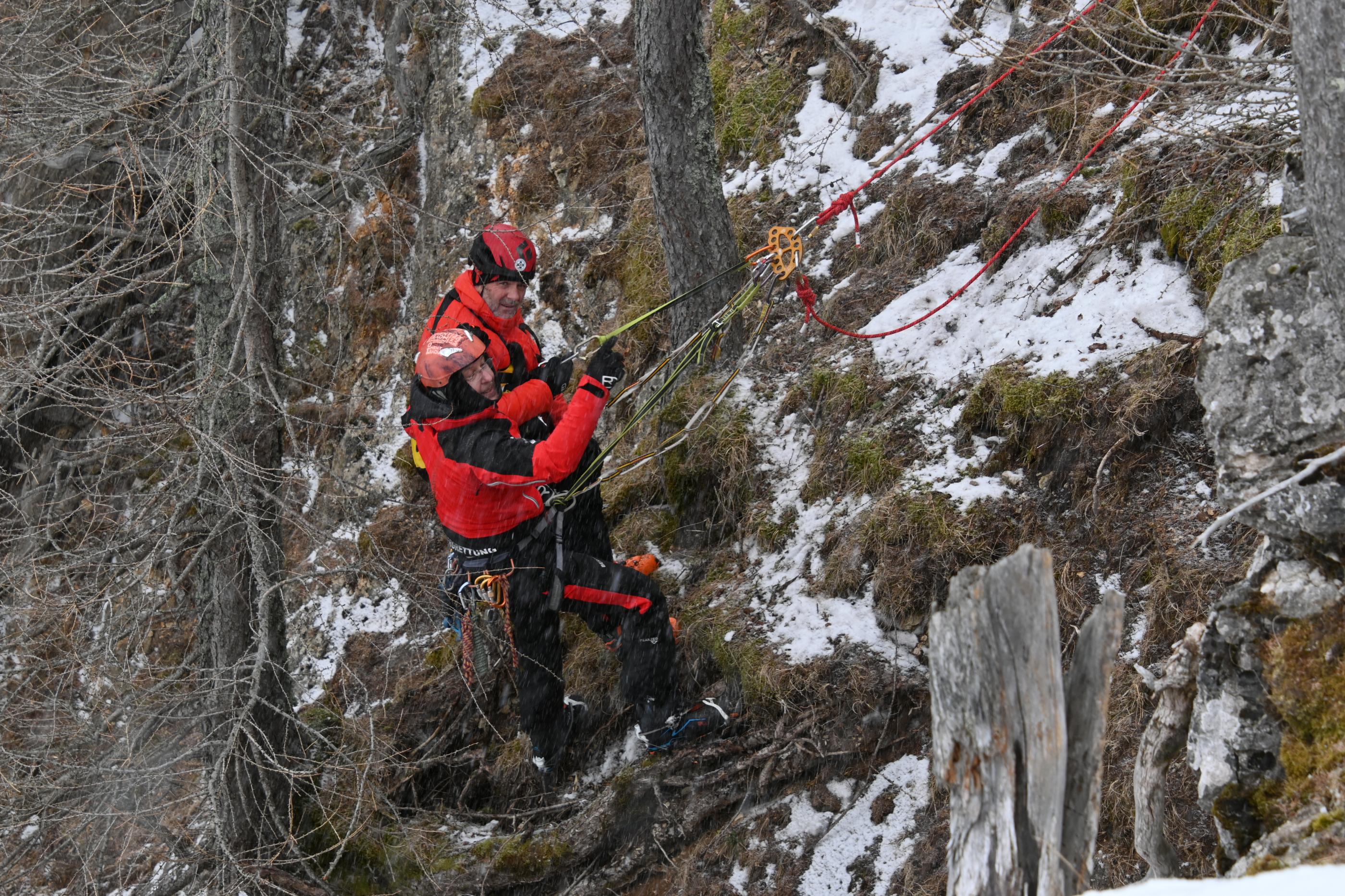 Sicheres und effizientes Bergen aus schwierigem Gelände mittels Flaschenzugsystemen.