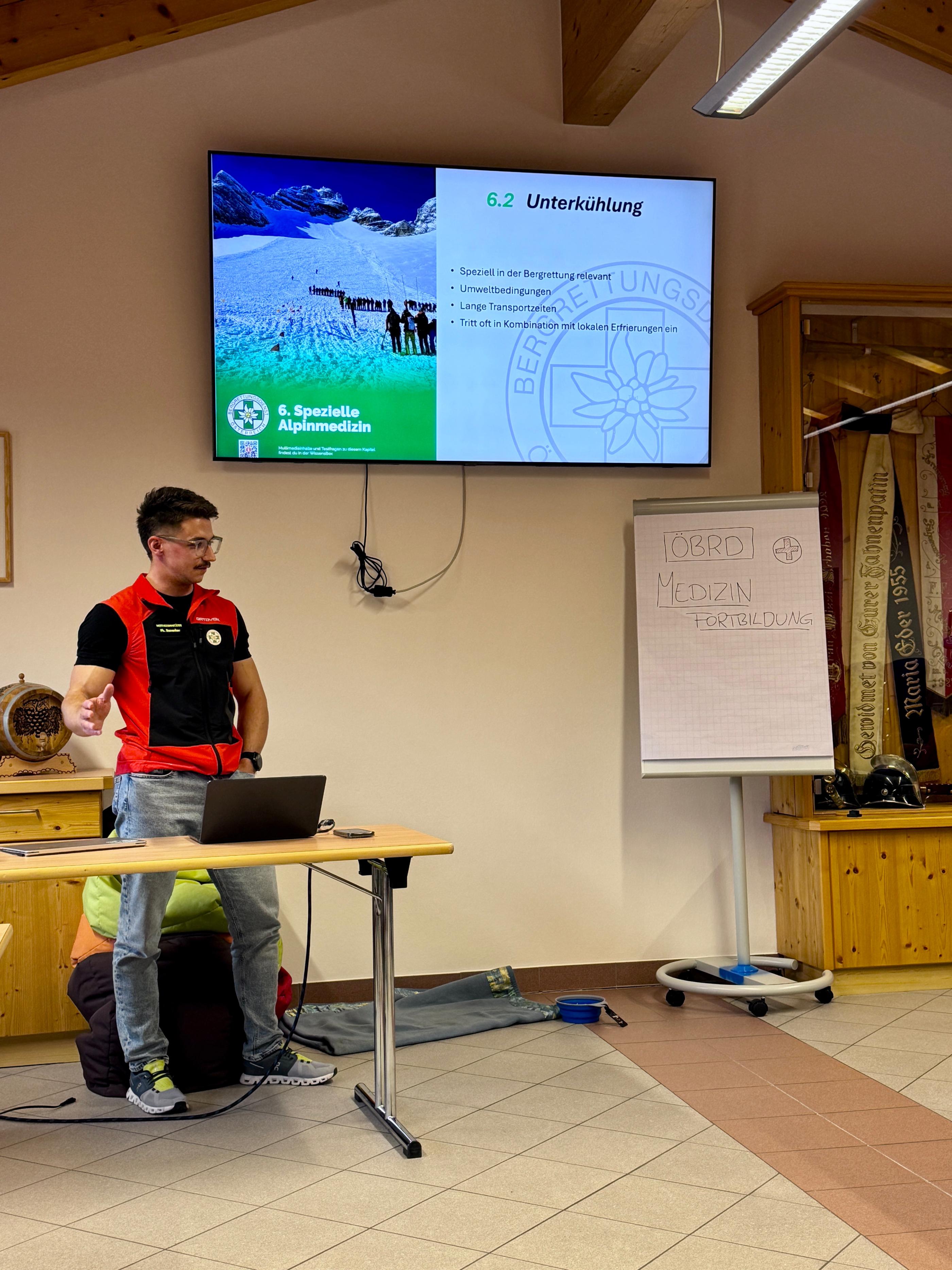 Anlässlich der bevorstehenden Winter- und Lawinensaison fand am Freitag, dem 24. Oktober, eine Medizinübung statt. Der Schwerpunkt lag dabei auf traumatischen Notfällen im alpinen Gelände, insbesondere auf Skiunfällen und Unterkühlung.