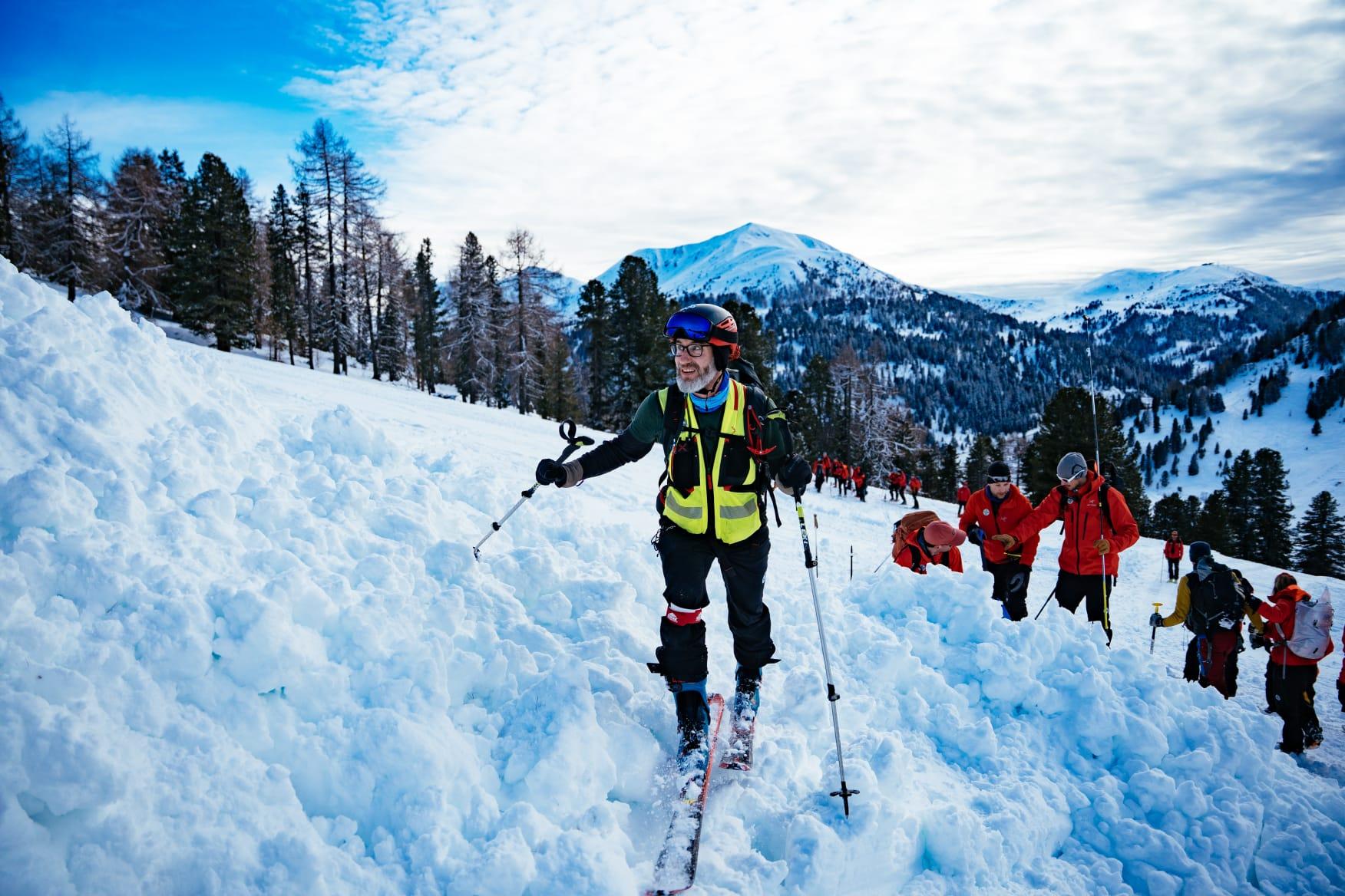 Im Rahmen der Einsatzbesprechung führten Bernhard Pichler Koban mit "Sammy" und Gerhard Gfreiner mit "Egan" die Teilnehmer in die Lawinenhundeausbildung und in die Erfahrungen im Einsatz ein. In der folgenden Übung arbeiteten die beiden Lawinenhunde, so wie im Einsatz, zwischen und mit den Menschen mit. Nicht nur für die Jungbergretter bedeutet dies einen Einblick in die spannende Lawinenhundearbeit, auch unsere Hundeführer können hier den Planmäßigen Lawineneinsatz mit ihren Hunden so trainieren, wie auf den Hundekursen kaum geübt werden kann. Danke dem Ausbildungsteam für die große gegenseitige Wertschätzung.