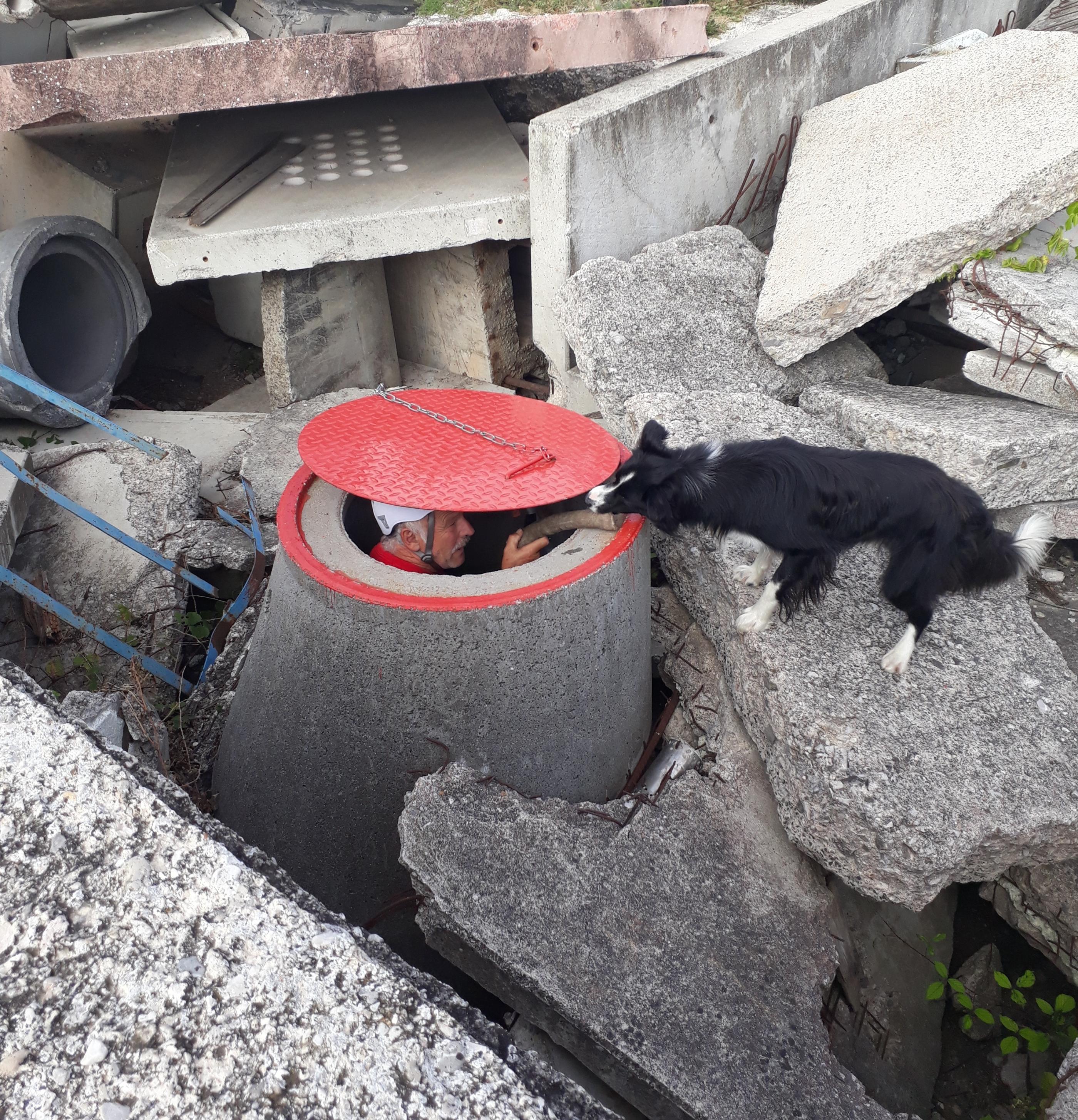 Eine besondere Herausforderung stellen die engen, dunklen, unterirdischen Kanäle dar, in denen kaum eine Luftbewegung stattfindet. Alles Situationen, die im Normalfall vom Hund strikt gemieden werden.